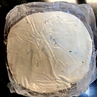While the flying cakes are not thawed, roll them out thinly through plastic wrap, coat the bottom of the iron plate with butter, stack the two rolled out flying cakes into the iron plate and bake them in the oven at 180 degrees for 10 minutes.