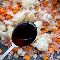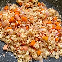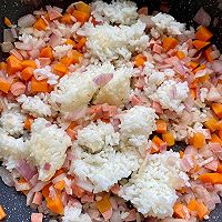 Stir-fry until soft and transparent, add diced ham and stir-fry for a while