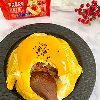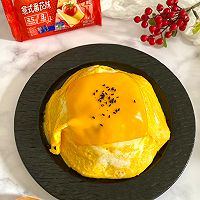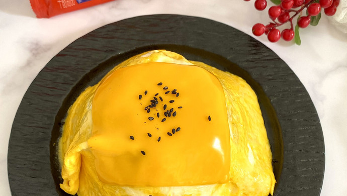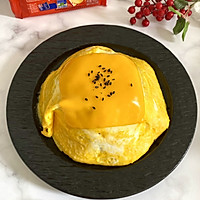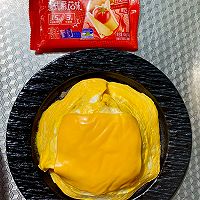 The finished omelette rice is covered with a piece of Anjia Italian tomato-flavored cheese slices, which is Anjia’s new flavor of cheese slices, rich in protein and calcium, and is delicious to eat directly or into dishes