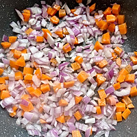 Heat the oil, add the onions and carrots and stir-fry for a while