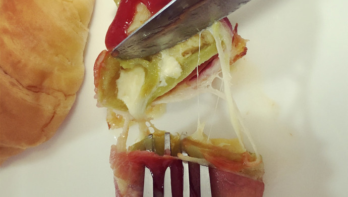 Add half of the mozzarella cheese to the chili, stuff the toast strips, continue to fill with cheese, close the chili cuts, and wrap them in bacon strips