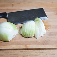 Cut the onion in half lengthwise and cut into strips 1 cm wide.