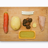 Pour oil into a hot pan, stir-fry chicken nuggets over high heat for 6 minutes, stir-fry the chicken nuggets are slightly golden and stir-fry with green onion and ginger, add potatoes, carrots, and mushrooms and stir-fry over high heat, add boiling water for no more than 2/3 and simmer over low heat for 10 minutes, turn off the heat and add the curry to melt and stir, turn on low heat for five minutes to collect the juice, add water and cook for a while
