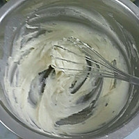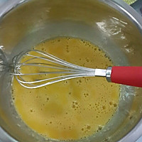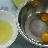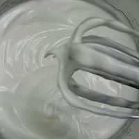 Add 35 grams of caster sugar in two batches and beat until the egg whites become dry foams (when the egg beater is lifted, the egg whites are slightly drooping and small sharp corners, which is dry foaming)