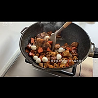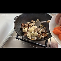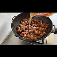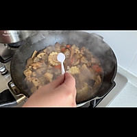 Add mirin/cooking wine, Japanese soy sauce, and sugar to stir-fry for color