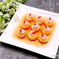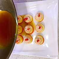 After making a thick state, pour it on the shrimp and egg tofu and garnish with red pepper;