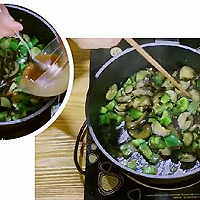 Pour in cooking wine and stir, turn to low heat and cook for 5 minutes, waiting for the juice to collect.