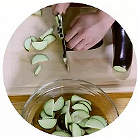 Slice the eggplant and soak it in water for 5 minutes to remove the flavor.