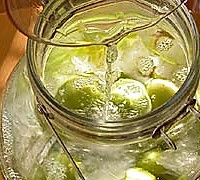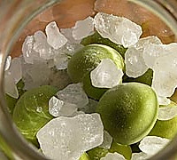The container should be sterilized with hot water and dried, avoid residual oil stains, and put the processed green plums and rock sugar into the bottle.