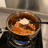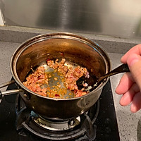 Add a little bean paste, pour in 50 grams of minced pork and fry until cooked