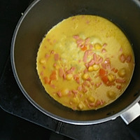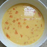 Dice the carrots, mix them with eggs, milk, salt, sugar, whipped cream, and corn kernels into egg juice and set aside (you can taste it first), add some lemon juice to remove the fishy smell; The pan must be fully heated before grilling, pay attention to the heat, and keep it on medium heat from start to finish.