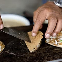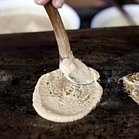 Heat the pan, do not add oil, scoop a tablespoon of powder with a small spoon, the thinner the better
