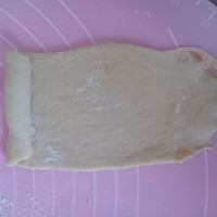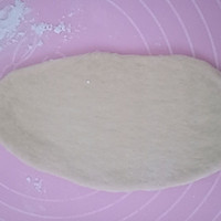 Take out the fermented dough and put it on the kneading mat (sprinkle the flour in advance to prevent sticking) and pat it out. Then divide into 8 equal parts and roll into a circle. Cover with plastic wrap and relax for 15 minutes. Take out a piece of dough and roll it into a beef tongue shape