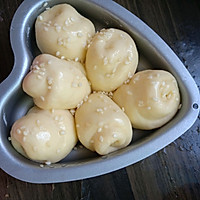 The second fermentation is placed in the oven, put a bowl of hot water at about 30 degrees at the bottom of the oven, now in summer, so don’t be too hot water, the oven temperature is 36 degrees, and the humidity is about 75%. Ferment until it is 1.5 times larger. Brush some oil and sprinkle some white sesame seeds. Preheat the oven to 180 degrees in advance for ten minutes.