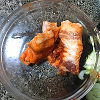 This is my own marinated pork belly in hot sauce (hot sauce with green onions and salt)