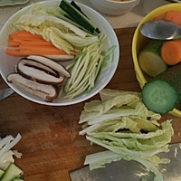 Then cut the ingredients into shreds and slices, depending on the situation, as uniform in size as possible.