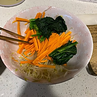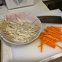 Prepare 100 g of bean sprouts, 20 g of carrots shredded,