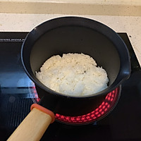Heat the bottom of the pan with a little sesame oil and pour in the rice Cook some pot over low heat