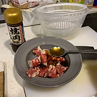 Put two spoons of roast meat sauce on 80 grams of fat beef slices and stir well