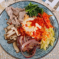 Fry the egg and put the sauce in (sauce: 3 tablespoons of Sprite, 2 tablespoons of Korean hot sauce, 1 tablespoon of sesame seeds, 1 spoon of sesame oil)