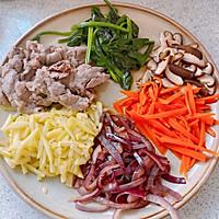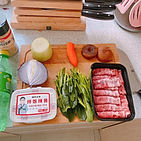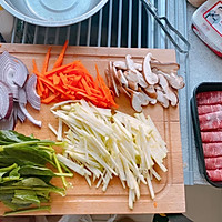 To prepare the above ingredients, I don’t like to eat bean sprouts, so I replaced them with onions, in fact, I should put bean sprouts. Spinach, zucchini, shiitake mushrooms, beef rolls, carrots