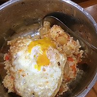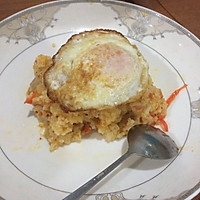 After frying the poached eggs, add some oil directly to the pot, add the shredded carrots and stir-fry for two minutes, then add the rice and stir-fry, then add the spicy cabbage and continue to stir-fry, add a little salt and stir-fry evenly, the spicy cabbage fried rice is ready, cover the poached eggs on top