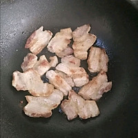 After cutting, you can fry in the pan, because the time is tight, so I fry it directly in a pan, when there is enough time, I like to use a special charcoal pan for roasting pork belly to bake, the pot is a raised pot with an oil pan on the side, which is very convenient but needs to burn charcoal is too time-consuming. There is no need to put oil in a pan for frying, because it will fry a lot of oil, and the frying oil should be poured out in time, and it can be poured into a bowl for later use, which is a good lard.