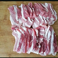 Now let’s cut the pork belly, it is best to buy the peeled pork belly a day in advance and freeze it, take it out when you use it, and cut it into slices of about 0.3 cm when you can cut it, freeze it and cut it well. I want to eat this one too late to freeze.