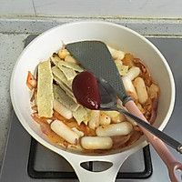Cut the ingredients and cook the rice cakes in advance, about 5 minutes or less, and then pour out the cold water (for fear that the rice cakes will stick together)