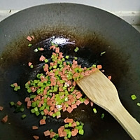 Dice the ham and cucumber, add a little salt, and stir-fry in a frying pan