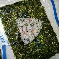 Place the stirred rice on top of the nori sheets and shape it to your liking