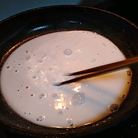 Glutinous rice flour is heated and cooked with water, milky white paste