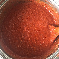 Mix the fruit juice, glutinous rice paste, chili noodles, fish sauce, and shrimp paste together