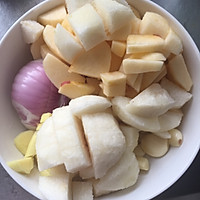 Chop the apples, pears, ginger, garlic, and onions and squeeze the juice, add some water to the juice, otherwise the final marinade will be very thick, and the concentration of the marinade can be adjusted by yourself