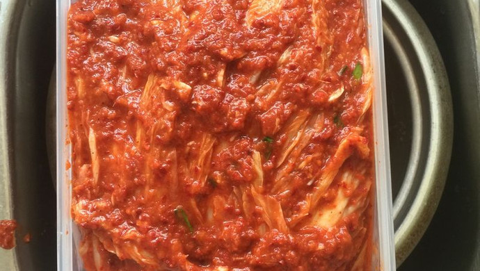 Remember to wear membrane gloves when cooking, otherwise your hands will be very spicy, because I don’t have coarse salt at home, so the edible salt used is a little salty, and then add half a pear to neutralize, generally marinated for most half a day is edible, the kind that is marinated for two or three days is sour kimchi, suitable for making kimchi soup and kimchi cakes