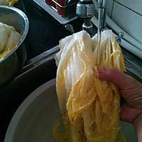 The cabbage has been wilted, rinse the cabbage one by one with water.