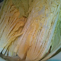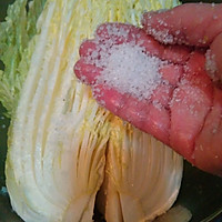 Then sprinkle a lot of salt evenly on each leaf, and sprinkle as little salt as possible on the tail of the leaf (or without salt), and the salt water can penetrate it. One cabbage should be sprinkled with about 70 grams of salt
