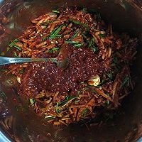 Pour in about 800 grams of Korean farmer’s homemade sauce and stir well until the shredded apples come out of the water