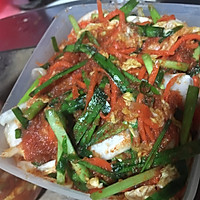 Wash and cut the Chinese cabbage into strips, dry the water, then salt for more than half an hour, cut the leeks into sections, and shred the carrots.