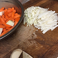 Leek segments, carrots, white radish, and shredded white radish are put together, because they are lazy, and the water is drained, so it is convenient to handle them together