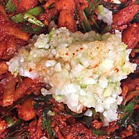 Add the fish sauce and shrimp paste and mix well, then put on disposable gloves to mix the kimchi sauce