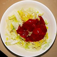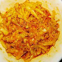 5. Add sesame sesame oil, sugar, and white vinegar to the cabbage, and if it is not salty enough, you can add less salt!