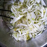 Baby cabbage, remove the roots, cut off the leaves, wash them, cut the gangs into strips, and eat them with chopsticks