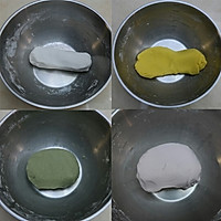 Add a teaspoon of salt and boiling water and slowly mix into a dough. At this time, the amount of water in the dough should be controlled, so the hot water should be put little by little. The prepared dough should be covered with a plastic bag to prevent moisture evaporation. The above steps must be repeated for all four colors.