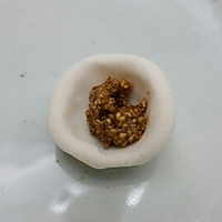 The next step is to start making muffins. The method of making muffins is very similar to the method of making glutinous rice balls. Divide the dough into N points evenly, roll each one into a small ball, then flatten it and make it concave, and put in the sesame trap to wrap the indentation like a dumpling.