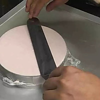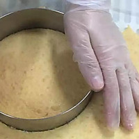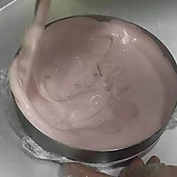 Paste the prepared mousse paste to the surface of the prepared recombinant cake base, to 1/2 of the mousse circle, and carefully fit the mousse paste with the mold to avoid pores.
