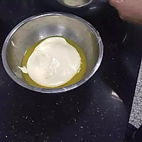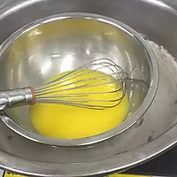 Passion Mango Milk Sauce: Pour caster sugar into the eggs and stir quickly until mashed.