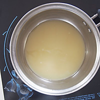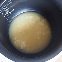 Put the clear liquid, rice and 15g sugar into the rice cooker and stir well