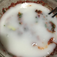 Glutinous rice flour is boiled with water to become viscous, let it cool, add it to the seasoning, and mix well