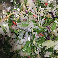 Shred all the seasonings, mix well, radish and apple can be grated with a grating tool, and the others can be chopped and mixed well